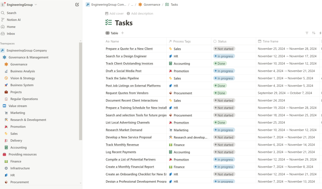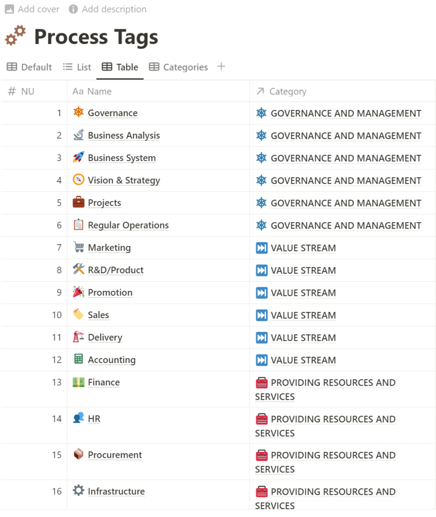 That’s it! The first stage is complete! We defined high level process model of entire business and set up Notion workspace according of this model. This is simple!
