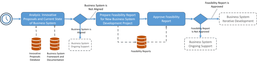 - If the Feasibility Report is not approved, we continue to support the existing system until the next scheduled review of innovative proposals against the current state of the business system.